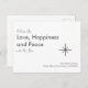 Retro New Year 2026 holiday card, with a grey typography design on a white background. With customisable lettering, you can add your own family name. A grey snowflake image accents the front of the card and with a grey background on the back. A simple way to send your wishes of love and peace in the new year.