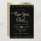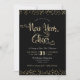 New Year Cheer Black Gold Script Confetti Party Invitation