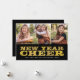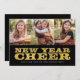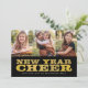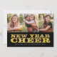 A fun New Year Cheer type treatment sits below three photos on this colourful Happy New Year holiday card. Send wishes for a wonderful 2021 with this festive card that features a distressed retro font in shades of yellow gold.