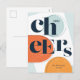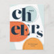 Wish your friends a Happy New Year with these modern trendy 4.25"x5.6" new year's greeting postcards feature multi-colour watercolor shapes with offset borders. The greeting, "Cheers" is in large, mismatched letters.