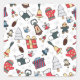New Year Christmas winter holidays pattern with gifts, candys, christmas tree and toys, santa hat, snowflake