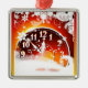 Square premium ornament with a festive image of a clock with the time approaching midnight in a drift of snow on ombre yellow and red. See the entire New Year Ornament collection under the HOME category in the HOLIDAYS section.