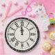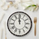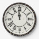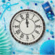 Clock with Roman numerals on fireworks with gold confetti falling for New Year's Eve party.
