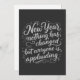 Sarcastic New Year quote in elegant hand-lettering: "Nothing has changed but everyone is applauding." Perfect for cynics and humor lovers