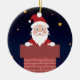 New Year Eve Santa Claus down the Chimney Ceramic Ornament