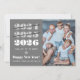 “2024. 2025. 2026. Third time better be a charm.” Sometimes, the new year can’t come quickly enough. And this is one of those years. On the left, a playful visual of modern, bold, graphic white typography overlaying a grey background and on the right, your funny family photo, help you usher in the New Year. Multi colour, festive doodads overlay white on the back. Feel the warmth and joy of the holiday season whenever you send this simple, stylish, personalised greeting card. Send this to someone special, especially someone with a sense of humour!