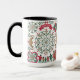 A cheerful red banner proudly displays "New Year," symbolising fresh beginnings and festive cheer, while the charming family illustration at the bottom of the design conveys togetherness and unity. Floral motifs and starry embellishments complete the composition, making this mug the perfect choice for sipping hot cocoa, coffee, or tea during the holiday season.