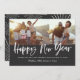 Bold modern black and white script script text, multi photo new year card. With star burst backer design. Available in different colours.