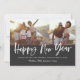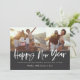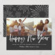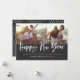 Bold modern black and white script script text, multi photo new year card. With star burst backer design. Available in different colours.
