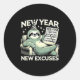 New Year New Excuses Funny Lazy Sloth New Year Res Classic Round Sticker