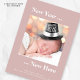 New Year New Here Photo Dusty Rose Pink Birth Announcement. Available digitally and printed. Your new baby has arrived in time to see in the new year! You'll be bursting to announce the wonderful news to your loved ones. You can wish them a Happy New Year at the same time with this modern fun design New Year, New Here which is fully customisable along with your favourite photo of your new son. Your favourite photo is in a square format in the centre, with there's lots of white space surrounding it for a contemporary feel. Easily personalise the text on the front and back with your own, including all the details of your new arrival on the back, and simply replace the sample photo in the template placeholder with your own. You can also change the background and text colours on either side if you wish via customise further.