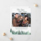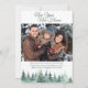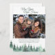 New Year, New Home Moving Announcement card which you can customise with a family photo or picture of your new home. The design features a winter forest border of trees in green watercolor. The template is set up for you to customise the wording with your name, new address and any additional information you want to include.