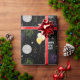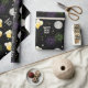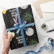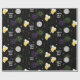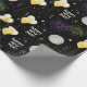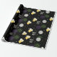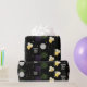 New Year Eve Party Wrapping Pape Patterned With Balloons, Fireworks and Script On Black Paper.