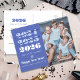 “2024. 2025. 2026. Third time better be a charm.” Sometimes, the new year can’t come quickly enough. And this is one of those years. On the left, a playful visual of modern, bold, graphic white typography overlaying a purple blue background and on the right, your funny family photo, help you usher in the New Year. The “2026” customisable year graphic, your personalised note, and return address are on the back. Feel the warmth and joy of the holiday season whenever you send this simple, stylish, personalised greeting postcard. Send this to someone special, especially someone with a sense of humour!