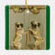 Cute, vintage picture of two pug dogs ringing bells for the New Year, is featured on this square ceramic ornament for 2026. The front of this ornament shows the pug dogs. The back of the ornament states, "Happy New Year To You. 2026", in white lettering on a green background. A sweet ornament for your tree or give as a gift!
