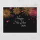 Celebrate the arrival of the new year with a dazzling display of vibrant fireworks lighting up the night sky. This festive postcard features colourful bursts of gold, red, blue, and purple, creating an atmosphere of joy and excitement. The elegant "Happy New Year" greeting is prominently displayed, adding to the celebratory mood. With dynamic sparks and brilliant fireworks, this design captures the spirit of a joyful New Year's Eve celebration, perfect for sharing the festive cheer and welcoming the new year in style.