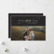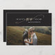 Celebrate the new year with a custom faux foil holiday photo card! This design a modern script font in a faux gold texture against a soft black background.