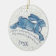 New Years Blue White Rabbit Bunny Delft Dedham Ceramic Ornament