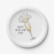 New Year Paper Plates with bubbles from a sparkling Champagne glass for this New Year's Party. Design in a simple, cool and modern style.