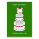 A multi tiered wedding cake iced in red and white, against a dark green background. Accompanying the image are the words 'Happy New Year's Day Wedding Anniversary'.