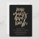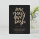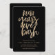 This New Year's Eve party design features a gold faux foil texture with hand lettered text on a chic black background.