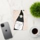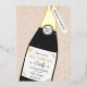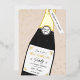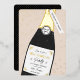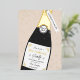 Gold, cream, and black champagne bottle and sprinkle party invitation design that can be personalised with your party details.