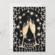 A modern New Year's eve invitation featuring toasting champagne glasses, and string lights on a black background. Customise with your information on the back of the card.