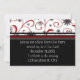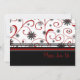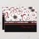 New Year's Eve party invitations in stylish black, white and red with elegant red swirls and black snowflakes, fully customisable with your party details.