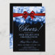 New Years Eve Party Navy Sparkle Lights Red Bow Invitation