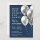 New Years Eve Party Silver Balloons Navy Blue Invitation