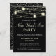 These New Year's Eve party invitations feature a string lights and mason jar design with black background.