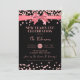 New Years Eve Rose Gold Glitter Confetti Bow Black Invitation