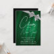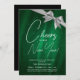 New Years Eve Silver Green Sparkle Sequin Bow Invitation