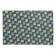This pillowcase has a mid-century modern design of ovals in navy with semi-circles in shades of yellow and shades of grey in them on a field of black.