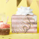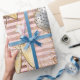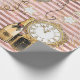 New Year's Eve or New Year's day party gift wrap with gold on a rose gold faux foil striped background, with balloons, fireworks, champagne glasses and clock. Gift your party guests or your significant other with something special to celebrate the upcoming year. Gold and rose gold.