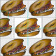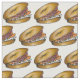 Fabric features rows of bagels topped with cream cheese, lox, onions, and capers--a New York deli breakfast classic! Created from an original marker illustration.