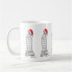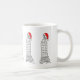 Mug features an original illustration of a classic New York City skyscraper, "dressed up" for Christmas with a red Santa Claus hat.