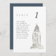 Chic wedding table number seating chart cards featuring a watercolor painting of New York City's Chrysler Building. The pairing of the painterly watercolor and the chic typography makes for a beautifully fun combo.