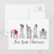 New York City Christmas postcard features a series of NYC landmarks adorned by various holiday decorations. Created from an original pen-and-ink illustration.