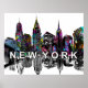 This work of art features the Manhattan, New York skyline covered in graffiti with a black ink reflection.