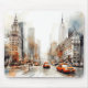 New York City, Manhattan. Beautiful painted downtown with yellow cabs.