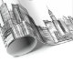 Elegant black and white watercolor New York City skyline monogram wrapping paper. Perfect for gift wrapping. Graduation, wedding, birthday.