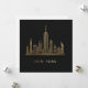 A clean and elegant graphic illustration featuring the iconic New York City skyline. Key landmarks like the Empire State Building and the Statue of Liberty are rendered in a minimalist, golden line art style. The text "NEW YORK" is written in a matching golden font below the cityscape. The design is set against a solid dark gray background, creating a sophisticated and modern esthetic.