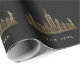 A clean and elegant graphic illustration featuring the iconic New York City skyline. Key landmarks like the Empire State Building and the Statue of Liberty are rendered in a minimalist, golden line art style. The text "NEW YORK" is written in a matching golden font below the cityscape. The design is set against a solid dark gray background, creating a sophisticated and modern esthetic.