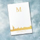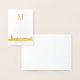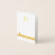 Simple, but elegant is this note card with a gold foil silhouette image of the New York City skyline at the bottom. At the top is your monogram in gold. Below the skyline image is another custom text field that currently says New York City. The back of the card has the same skyline image, but without the text. The inside is left blank for your own message. Versatile and memorable!