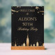 Welcome your party guests to a memorable birthday celebration with this chic New York City skyline welcome sign. The striking contrast of the black background and shimmering gold cityscape, accented with falling confetti, creates a sophisticated and celebratory atmosphere. This foam board is ideal for adding a touch of class and excitement to any milestone birthday party, particularly those with a New York theme or a desire for an elegant, art deco ambiance.
