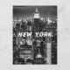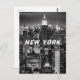 A dramatic black and white aerial view of the New York City skyline at night. The iconic Empire State Building stands tall in the centre, illuminated against the dark sky. The city's towering skyscrapers stretch out in all directions, creating a breathtaking and awe-inspiring scene. The Hudson River and the surrounding boroughs can be seen in the distance.