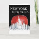 This design features the New York city skyline with the statue of liberty against tall skyscrapers in white. A bright red "big apple" sits behind the skyline over a contrasting black background.The popular nickname for New York City, "The Big Apple" originated in the 1920s in reference to the prizes (or "big apples") rewarded at the many racing courses in and around New York City. However, it wasn't officially adopted as the city's nickname until 1971 as the result of a successful ad campaign intended to attract tourists.