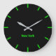 Discover the best modern wall clock for living room and office with New York City written on it. black and white clockwise background
