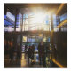Features an original colour photograph of shoppers at Columbus Circle, with sunlight streaming through the windows.